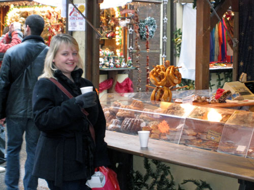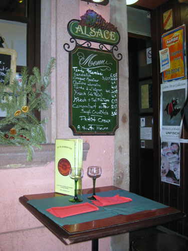 Pub James'on (sic), Colmar, where John and Judy had lunch: Smoked Sausage with Potato Salad and Tarte à L'oignon -