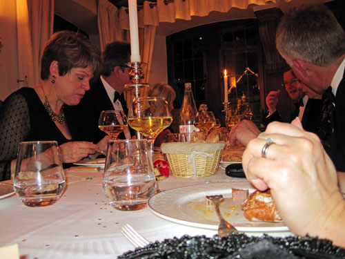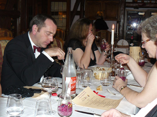 The full 11-course menu for the evening is here and 2 large photos of everyone at the Caveau d'Eguisheim here and here